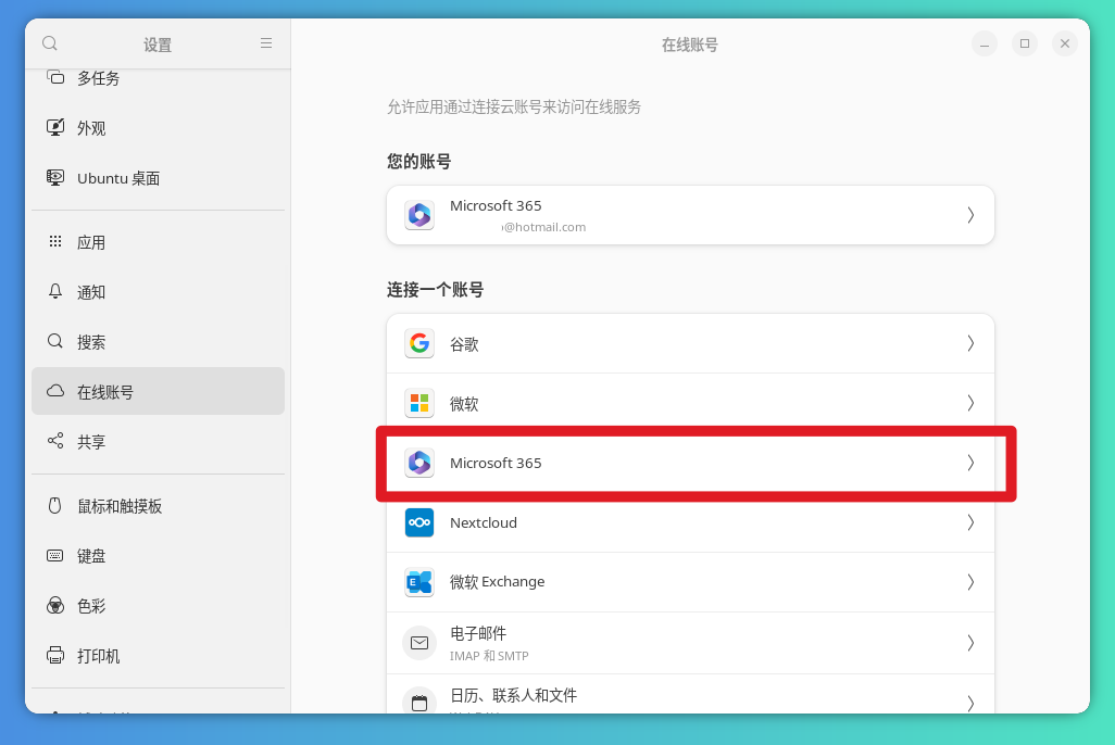 三、使用 GNOME 桌面的在线账号功能(推荐给日常用户) #